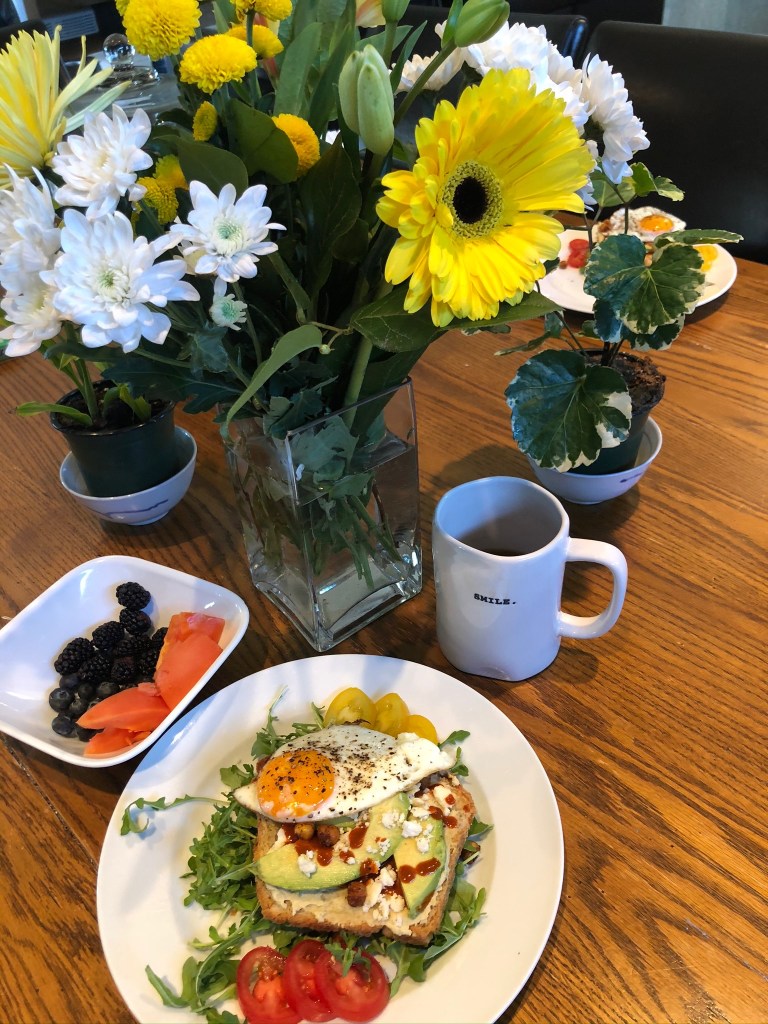 Method:To assemble this amazing open faced work of art, Dawson first put the arugula on the plate. He then spread the hummus on the toast and placed it on the arugula. Place thinly sliced avocado on the hummus and sprinkle with chickpeas. Top with egg cooked to your liking. Sprinkle with pepper, hot sauce and feta. Garnish with tomato slices. This dish created by Dawson is; visually stunning, healthy, and so satisfying. Give it a try!