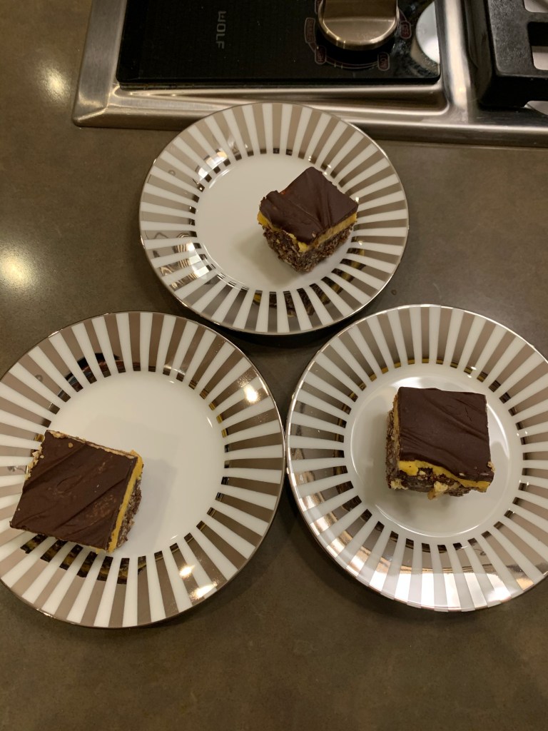 To cut the bars run a knife under water an dry before making each slice. Yummy served at room temperature. Store leftover bars if any in the fridge. This recipe make 9 large bars. Indulge yourselves once in awhile people ❤️