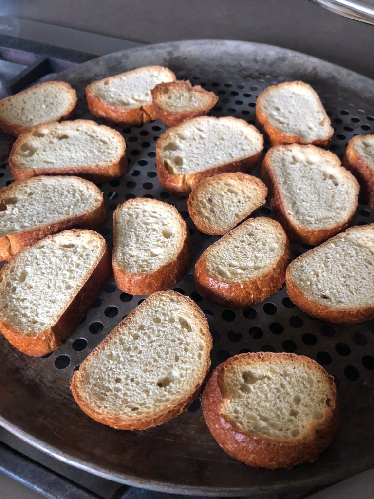 1 baguette sliced into 1/4” rounds & toasted